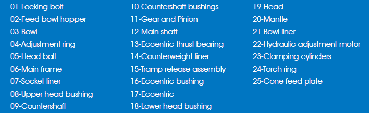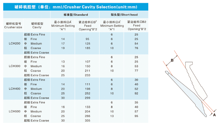 LCH series cone crushers can be converted from the finest to the coarsest simply by replacing the mantle, bowl liner, adapter ring and the wedge bolts.